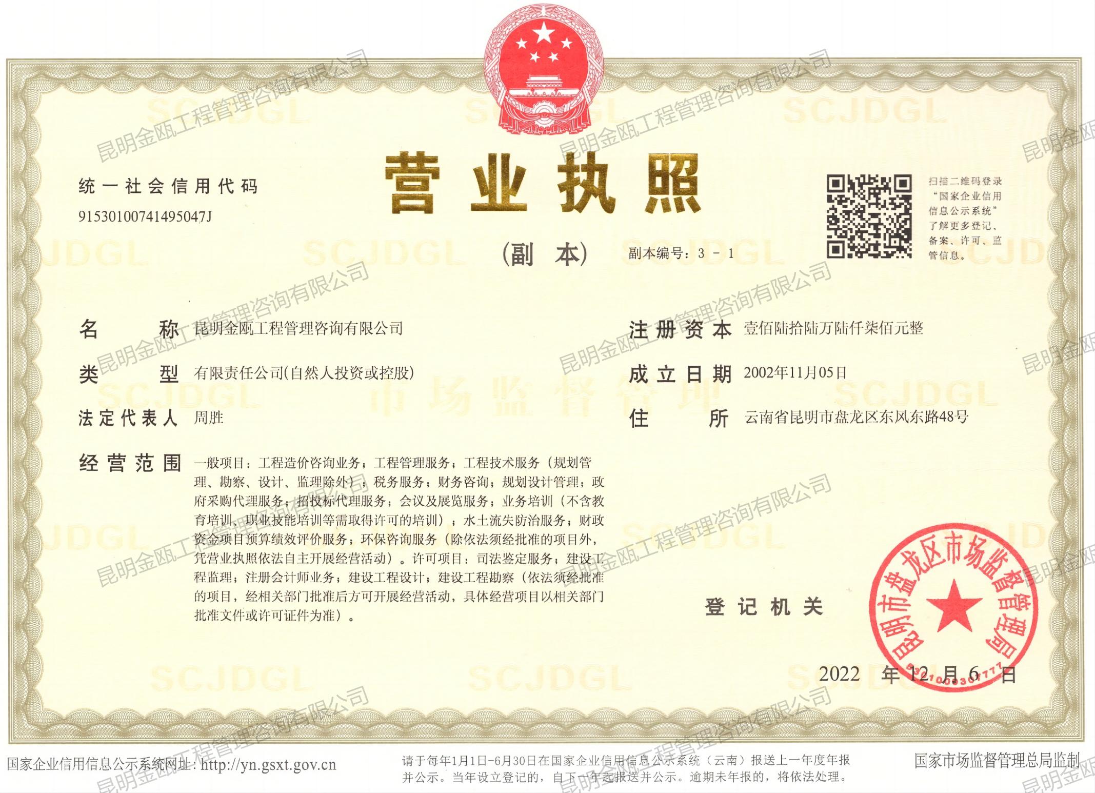 - 昆明金甌工程管理咨詢(xún)有限公司在2022年度有色金屬建設(shè)行... 2023-02-24