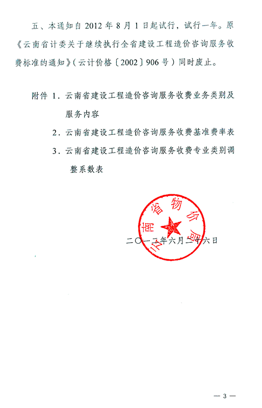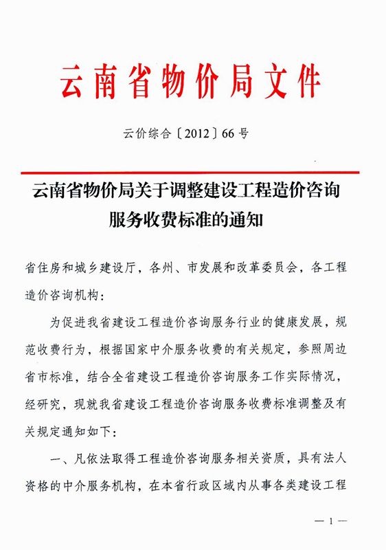 云南省物價(jià)局關(guān)于調(diào)整建設(shè)工程造價(jià)咨詢(xún)服務(wù)收費(fèi)標(biāo)準(zhǔn)的通知 云價(jià)綜合[2012]66號(hào)