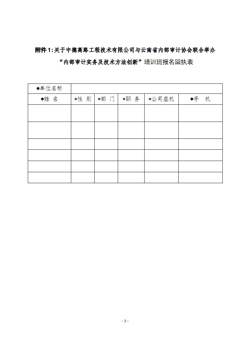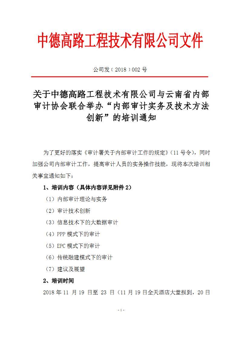 關(guān)于中德高路工程技術(shù)有限公司與云南省內(nèi)部審計(jì)協(xié)會(huì)聯(lián)合舉辦“內(nèi)部審計(jì)實(shí)務(wù)及技術(shù)方法創(chuàng)新”的培訓(xùn)通知