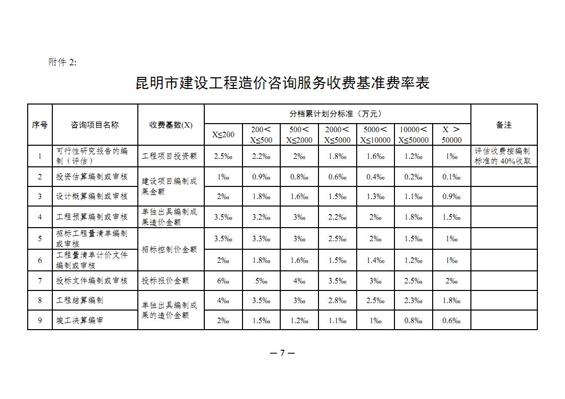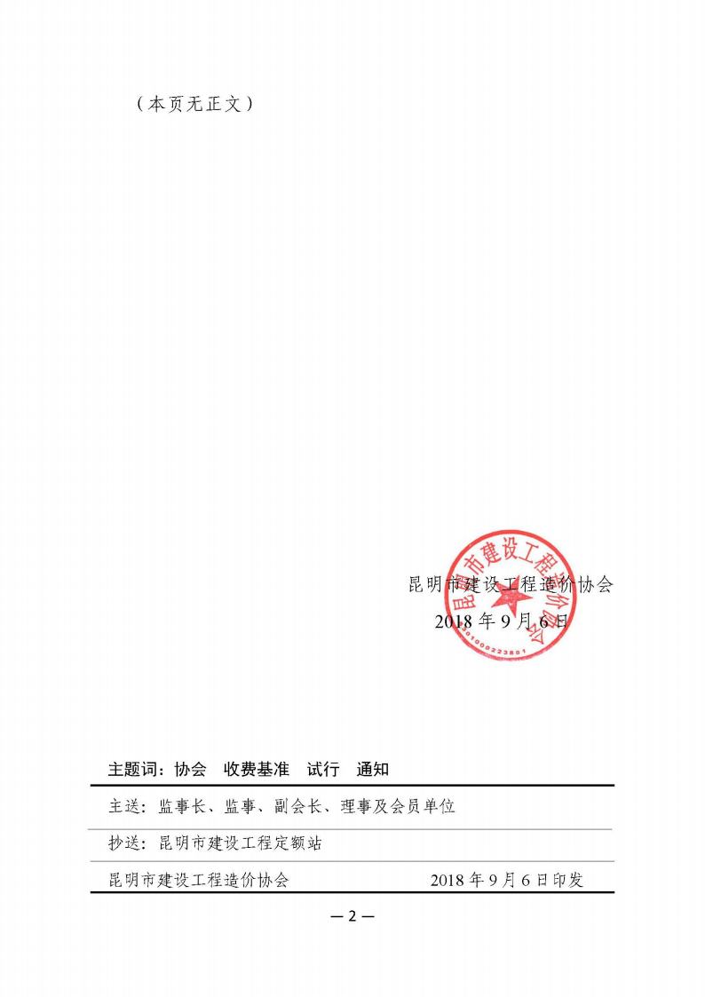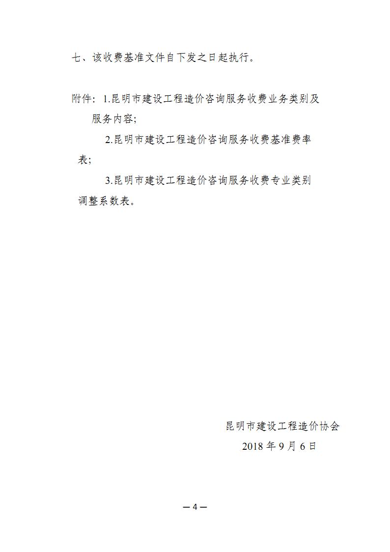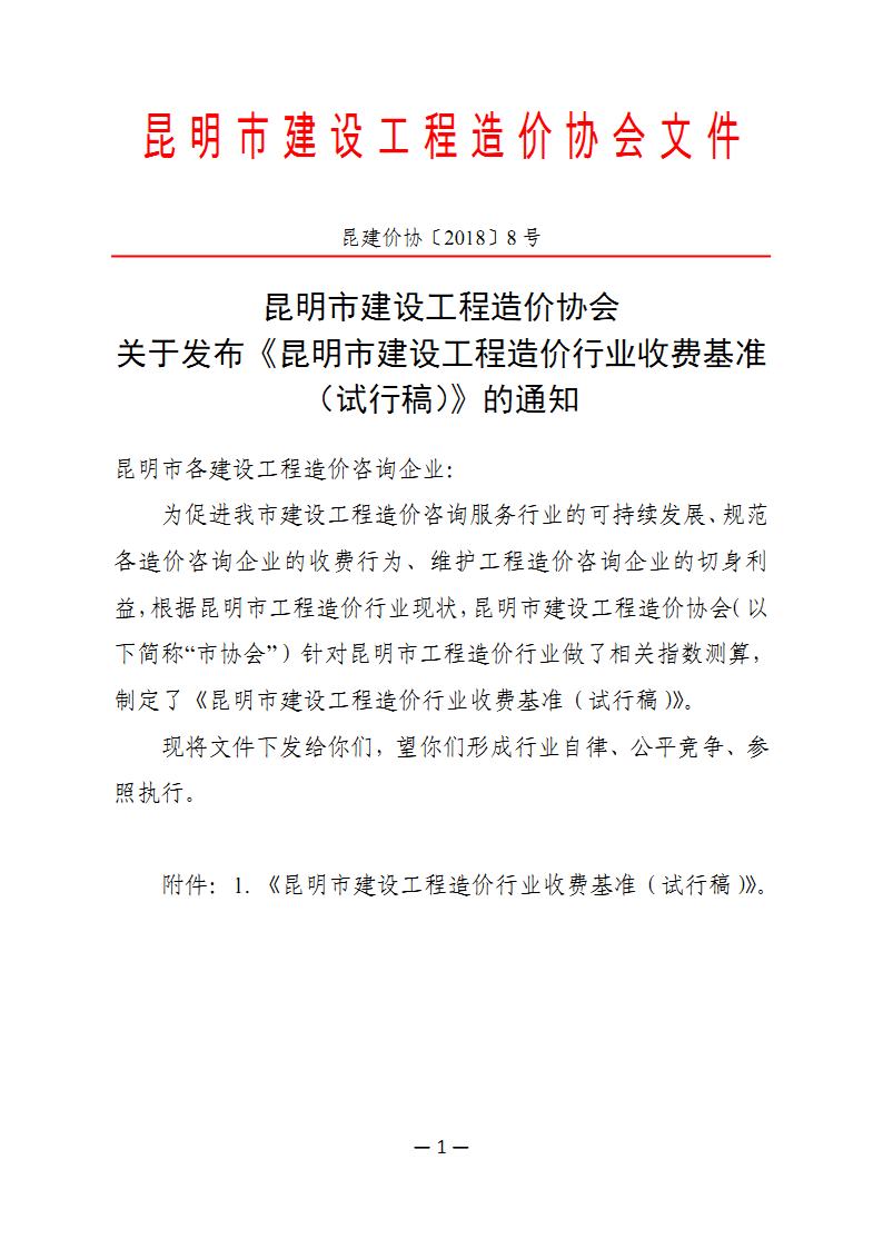 昆明市建設工程造價行業(yè)收費基準(試行稿,昆建價協(xié)〔2018〕8號)