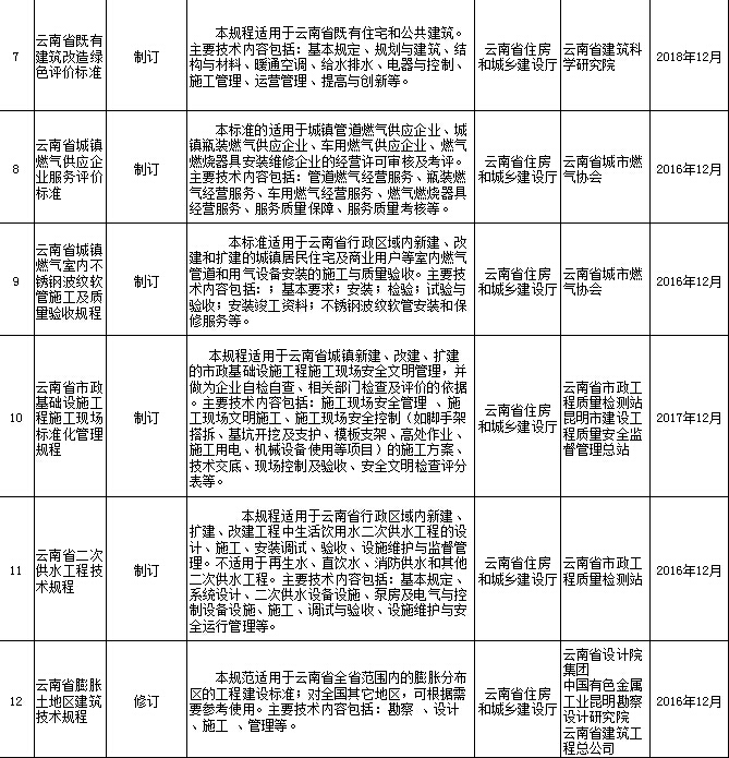 附件:《2015年云南省工程建設(shè)地方標(biāo)準(zhǔn)編制修訂計劃》
